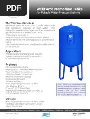 The tank utilizes a thick diaphragm to keep water separate from pre charged air and to help reduce air loss.